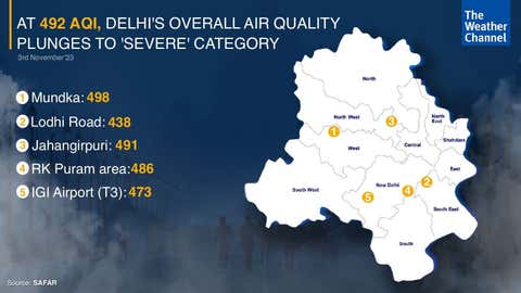 At 492 AQI, Delhi NCR Air Quality Plunges to ‘Severe’ Category